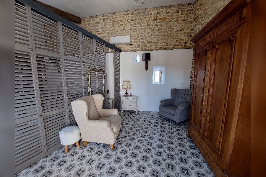 L'appartement Lavande est dans une belle pièce haute, "en pierre". Depuis la cuisine, des portes donnent accès à la belle terrasse privée d'où l'on a une vue sur le petit village de Saint-Denis dans le Gard, dans le sud de la France. Le Gîte Lavande des gîtes NouLou a un intérieur de style hôtelier où le lit double est séparé par de belles et anciennes portes Louvre du salon avec 2 belles fateuils relax et une grande armoire. La cuisine se trouve dans une pièce séparée avec de grandes portes donnant sur la terrasse, elle est équipée de la climatisation et se trouve au 2ème étage. Base parfaite pour visiter les belles villes culturelles, les marchés sympathiques ou les nombreuses attractions à proximité.