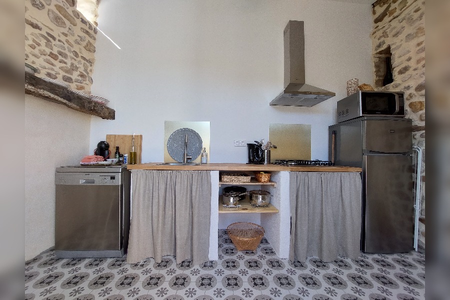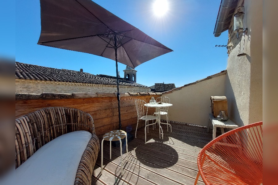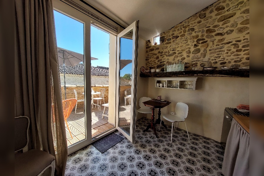 L'appartement Lavande est dans une belle pièce haute, "en pierre". Depuis la cuisine, des portes donnent accès à la belle terrasse privée d'où l'on a une vue sur le petit village de Saint-Denis dans le Gard, dans le sud de la France. Le Gîte Lavande des gîtes NouLou a un intérieur de style hôtelier où le lit double est séparé par de belles et anciennes portes Louvre du salon avec 2 belles fateuils relax et une grande armoire. La cuisine se trouve dans une pièce séparée avec de grandes portes donnant sur la terrasse, elle est équipée de la climatisation et se trouve au 2ème étage. Base parfaite pour visiter les belles villes culturelles, les marchés sympathiques ou les nombreuses attractions à proximité.